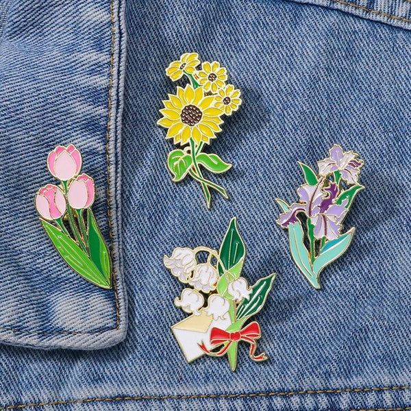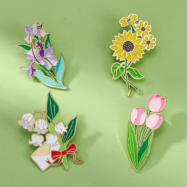 CZ0976-4 Cartoon Plant Flower Alloy Enamel Badge Garden Style Sunflower Clothing Bag Brooch Ornament