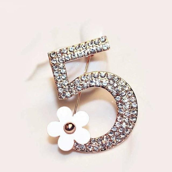 Digital 5 Small Flower Individual Creative Brooch(Rose Gold White)