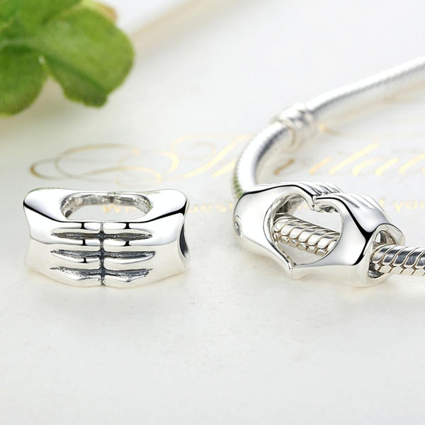 DIY Bracelet Beads Holding Hands Heart-to-heart S925 Sterling Silver Beads