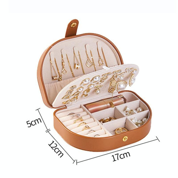 Double Layer PU Jewelry Storage Box Semi-circular Portable Earring Necklace Ring Organizer Box(Brown)