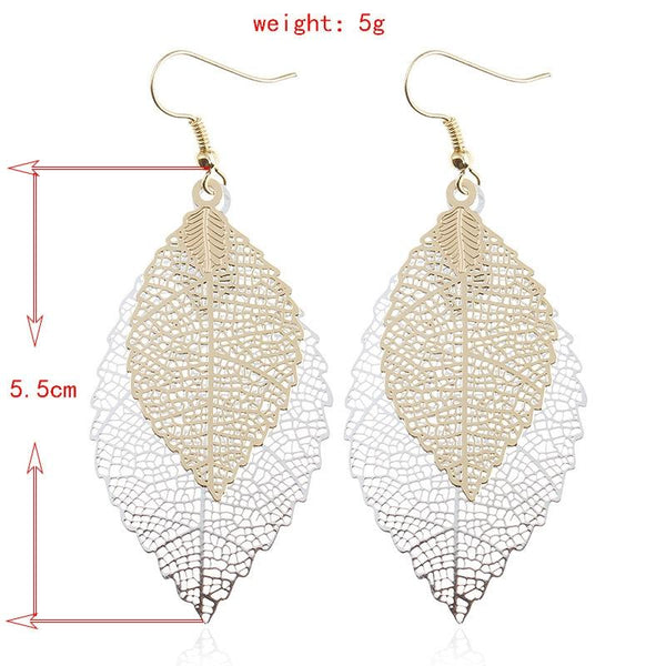 Double-layered Leaves Tassel Earrings Simple Retro Metal Leaf-ears Ornaments(Colorful)