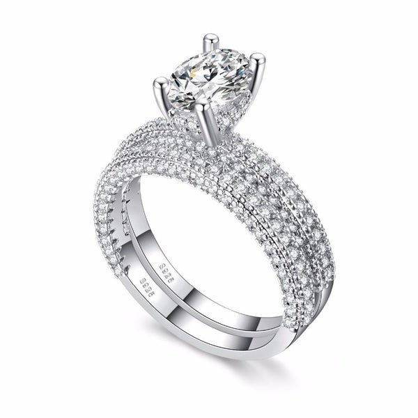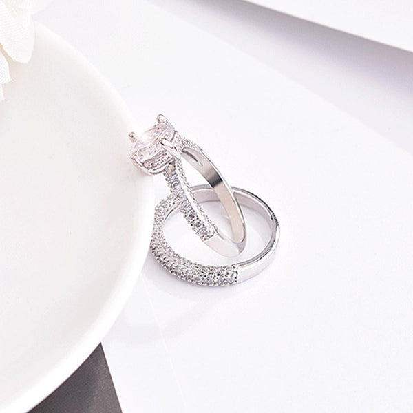 Double Row For Women Fashion Cubic Zirconia Wedding Engagement ring, Ring Size:10(Round White Gold)