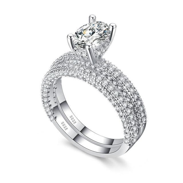Double Row For Women Fashion Cubic Zirconia Wedding Engagement ring, Ring Size:9(Egg Shape White Gold)