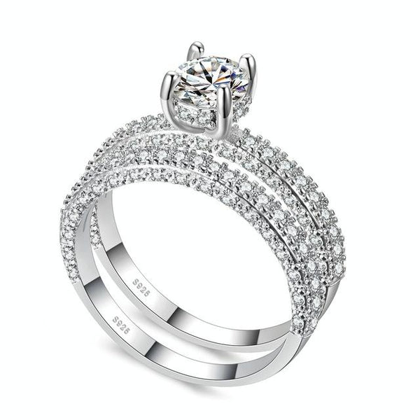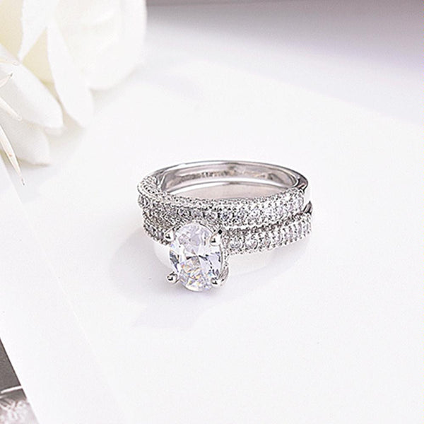 Double Row For Women Fashion Cubic Zirconia Wedding Engagement ring, Ring Size:9(Round White Gold)