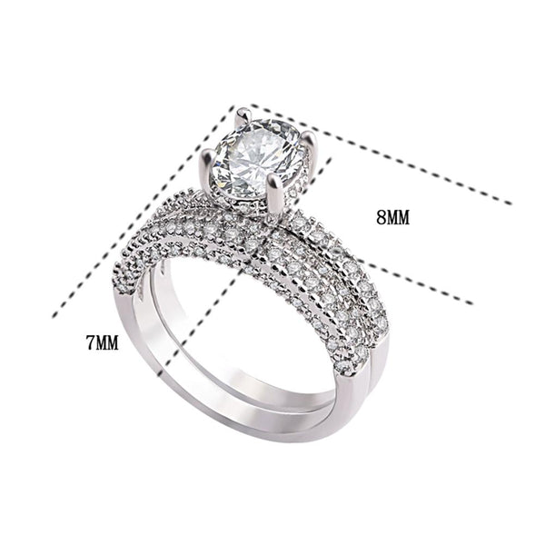 Double Row For Women Fashion Cubic Zirconia Wedding Engagement ring, Ring Size:9(White Gold Deputy Ring)