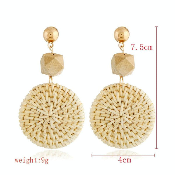 E2002-14 Prongs+Big Circle Bamboo Vine Handmade Woven Earrings Bosomia Style Earrings