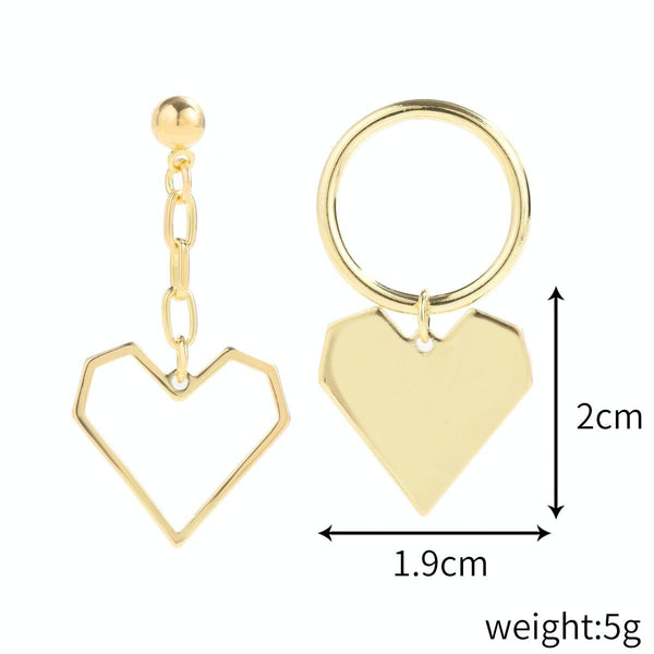 E2112-9 Gold Asymmetric Love Love Silver Needle Earrings Simple Earrings