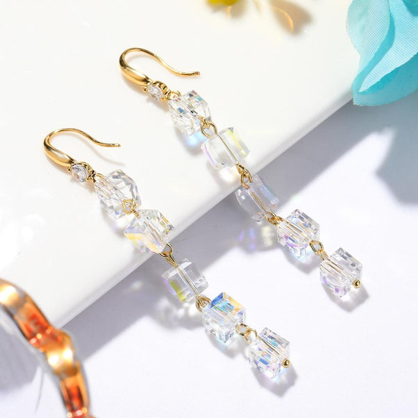 E2204-2 Square Crystal Natural Crystal Handmade Earrings Zircon Long Earrings