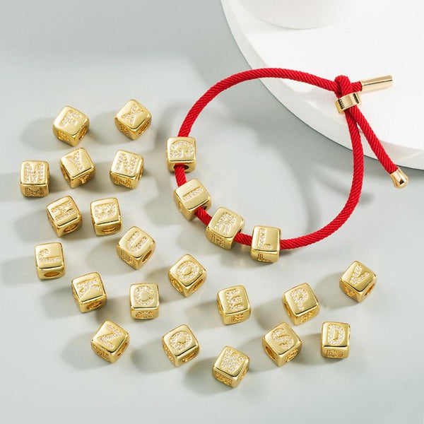 English Letter Beads Bracelet Brass Micro-inlaid Couple Red String Pull DIY Bracelet Jewelry, Style:R