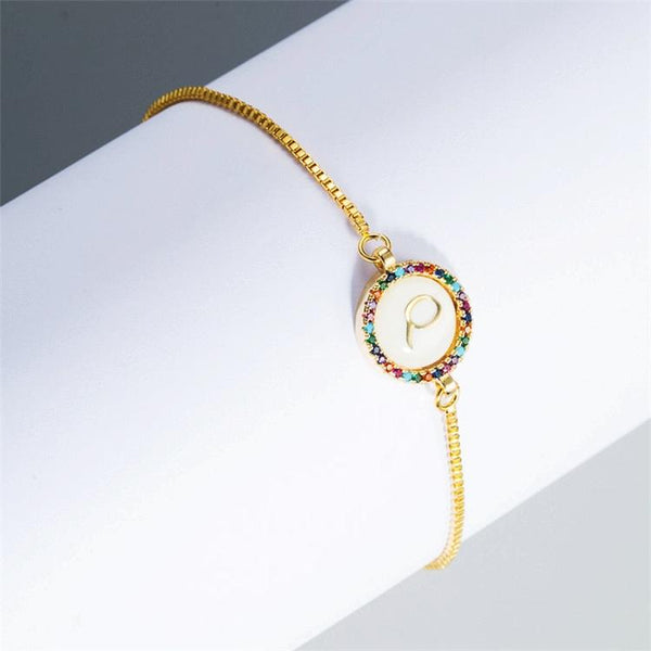 English Letter Bracelet Couple Girlfriends DIY Bracelet Men Women Micro Inlaid Zircon Rainbow Bracelet(Q)