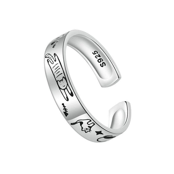 Engraved Cat Graffiti Sterling Silver Ring Jewelry