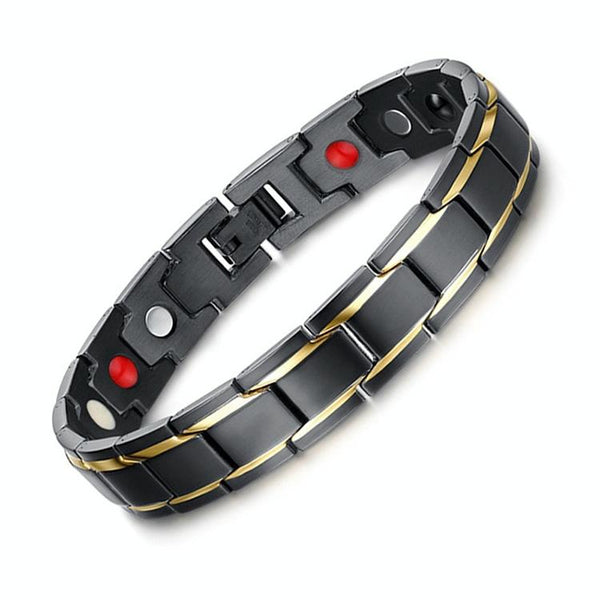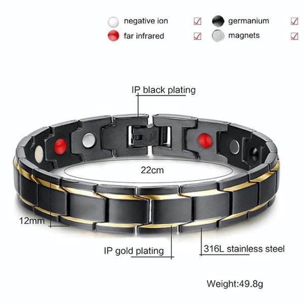 Europe and America Style Fashion Men Jewelry Stainless Steel + Gold-mounted Plating Magnetic Health Bracelet, Size: 12mm*22cm (Black+Gold)