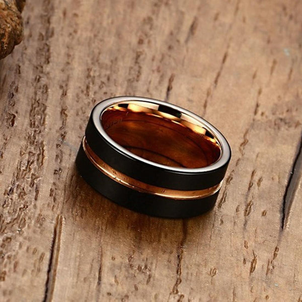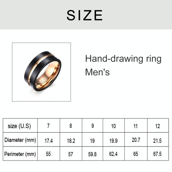 Europe and America Style Men Classic Ring Pure Tungsten Carbide Hand-brushed Rose Gold Plating Ring, Size: 7 Diameter: 17.4mm, Perimeter: 55mm