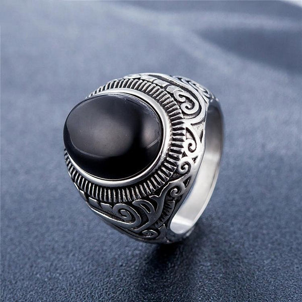 Europe and America Style Retro Gemstone Turquoise Men Titanium Steel Ring, Size: 12, Diameter: 21.5mm, Perimeter: 67.5mm(Black)