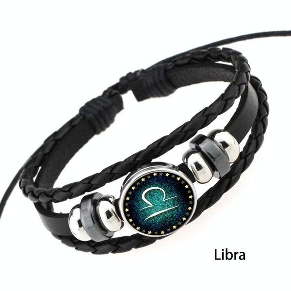 European and American Hand-knitted Beaded Retro DIY Bracelet Libra Constellation Leather Punk Fashion Bracelet