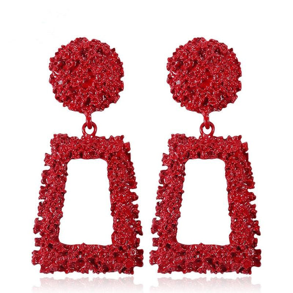 Exaggerated Scrub Geometric Earrings Trapezoidal Long Metal Earrings(Black)