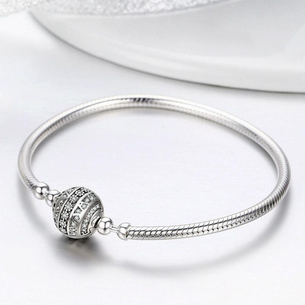 Exquisite Life S925 Sterling Silver Bangle Bracelet Inlaid with Gems, Size:20cm