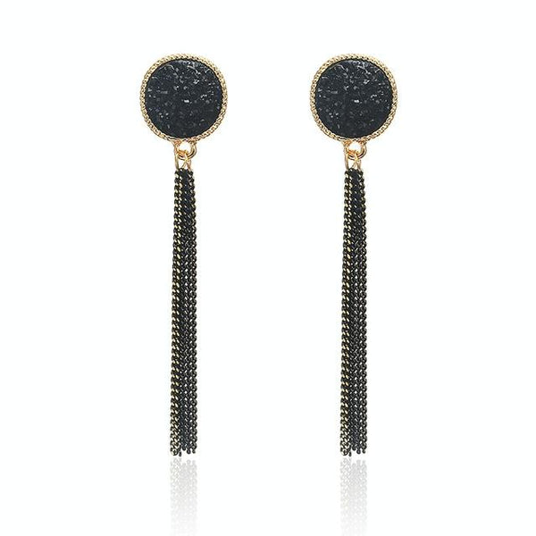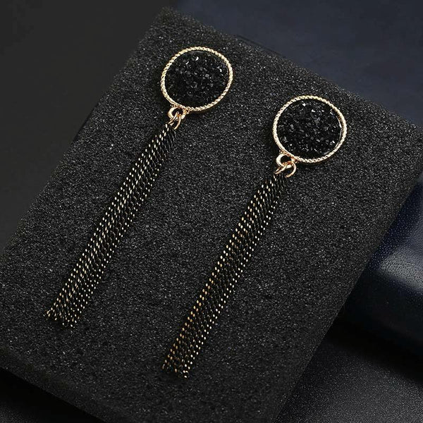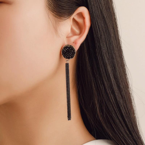 Fashion Black Rhinestone Long Drop Earrings For Women Jewelry(BLACK)