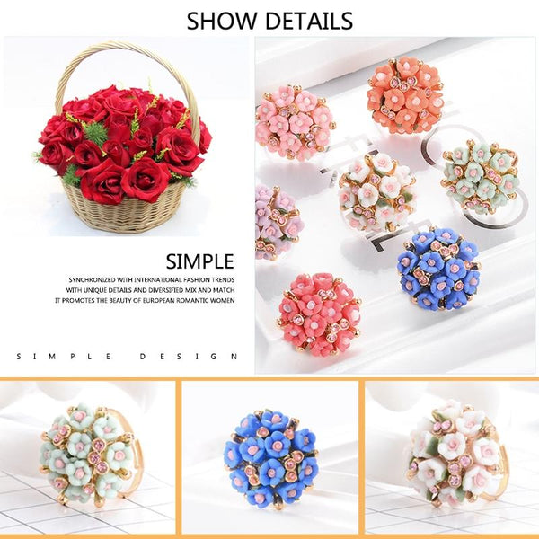 Fashion Ceramic Flower Ring for Women Adjustable Wedding Rings Jewelry(Red)