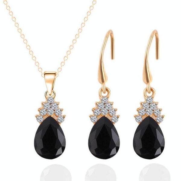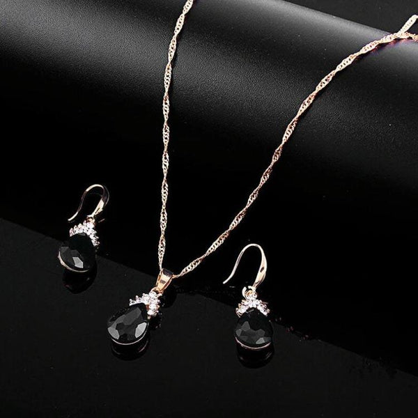 Fashion Diamond Ladies Crystal Zircon Drop Necklace Earring Set(Black)
