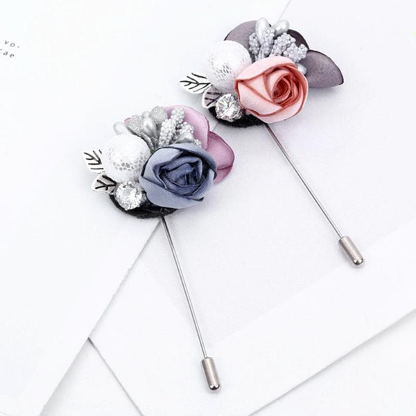Fashion Handmade Fabric Flower Lace Pearl Brooch(Grey)
