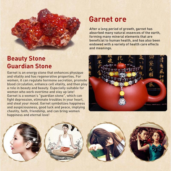 Fashion Jewelry Accessory Garnet Beads Bracelet (Aquamarine & Longevity Lock)