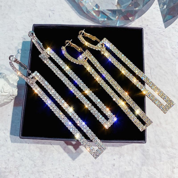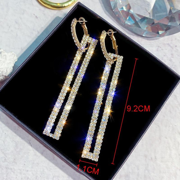 Fashion Long Geometric Drop Earrings Luxury Gold Silver Color Rectangle Rhinestone Earring(Rose Gold)