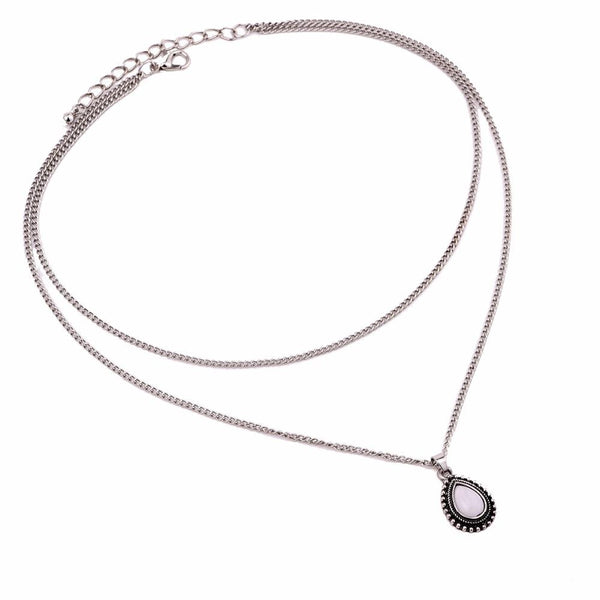 Fashion Retro Water Drop Shape Multi-layer Crystal Pendant Necklace(Drops necklace)