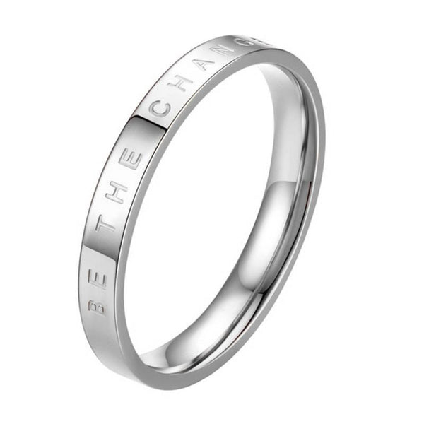 Fashion Simple Narrow BE THECHANGE Ring Electroplated 18k Titanium Steel Couple Ring, Size: 6 US Size(Silver)