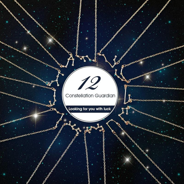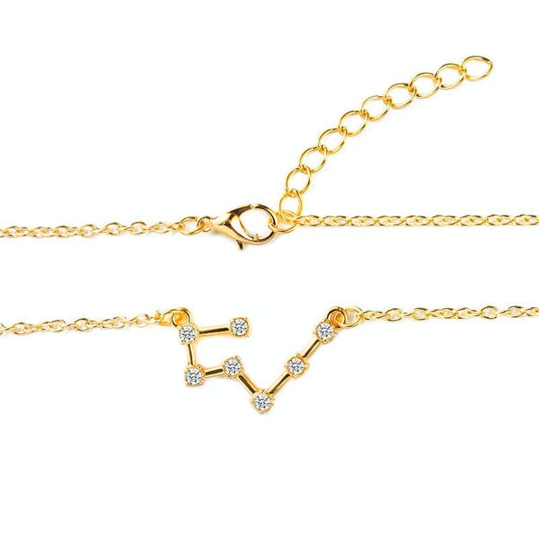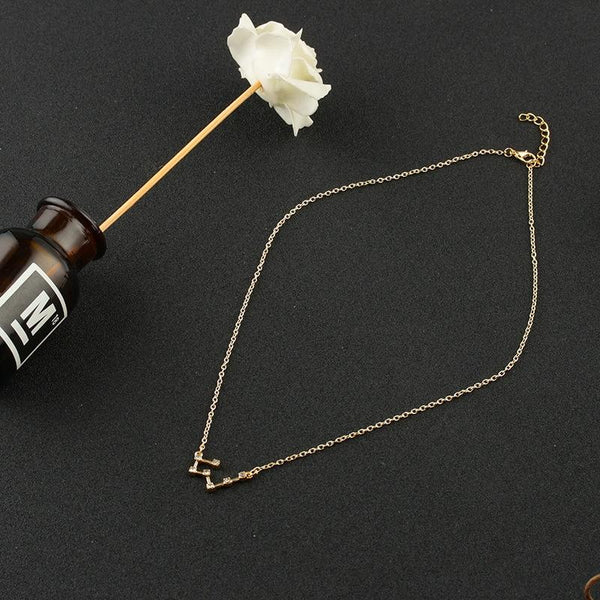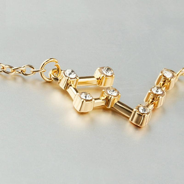 Fashion Zircon Pendant Zodiac Guardian Necklace Short Clavicle Chain(Aries-Gold)