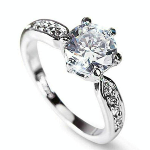 Female Classic Crystal Six-Claw Diamond Ring Wedding Ring, Ring Size:5(White Gold)