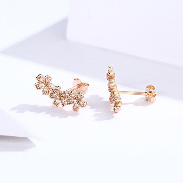 Flowers Zircon Earrings Sterling Silver Female Earrings Simple Earrings, Color:Rose Gold