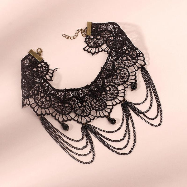 Fringe Lace Gothic Lolita Vintage Necklace,Style: 1530