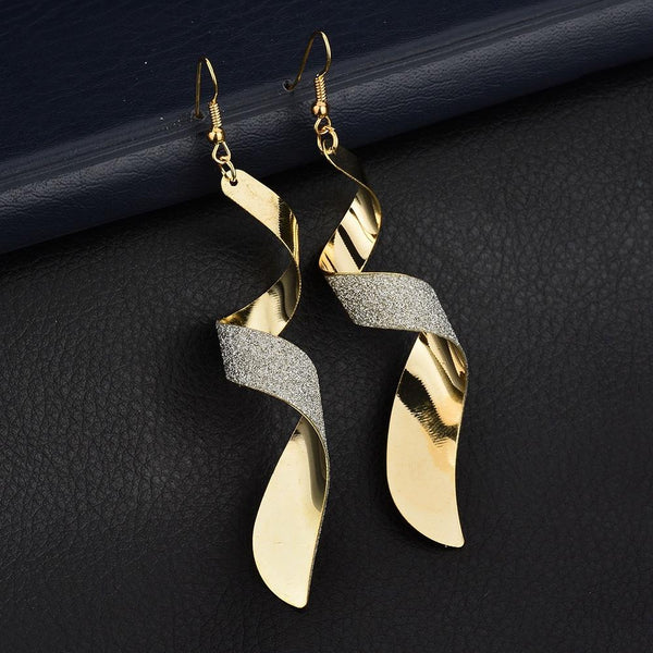 Frosted Long Twisted Hoop 3D Earrings(Gold)