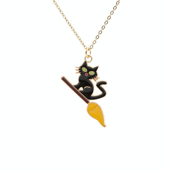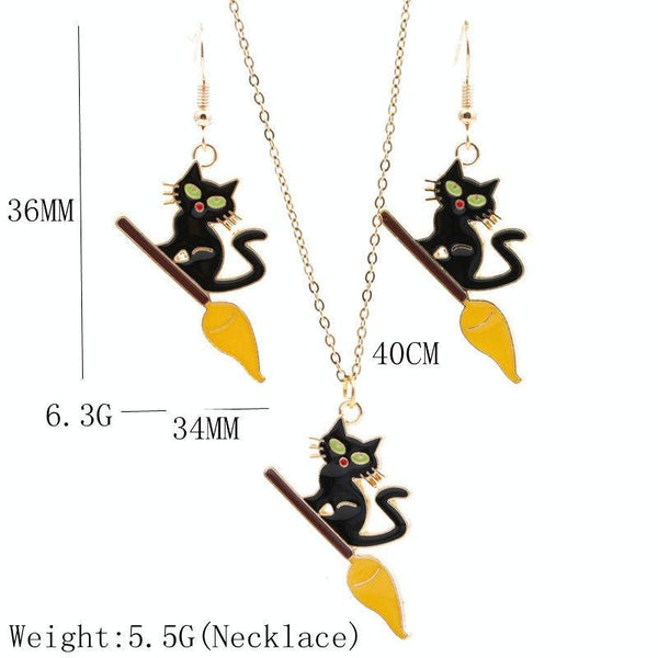 Funny Halloween Cat Exaggerated Earrings Necklace Assembly(Green Earrings+Necklace)
