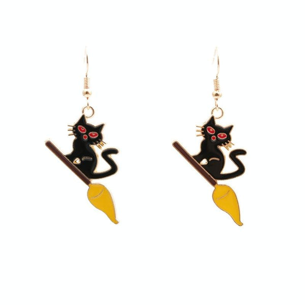 Funny Halloween Cat Exaggerated Earrings Necklace Assembly(Red Earrings+Necklace)