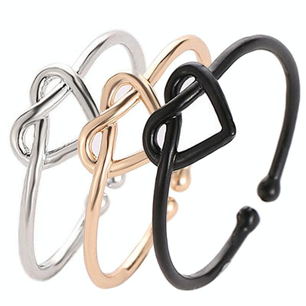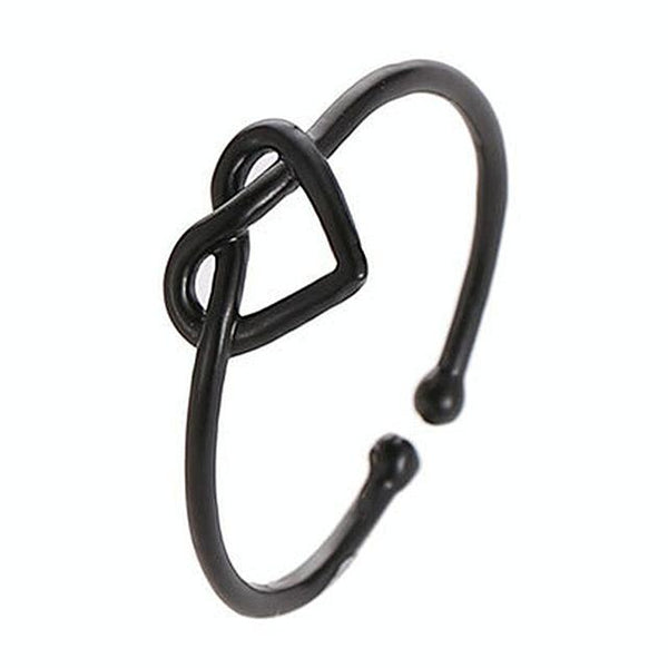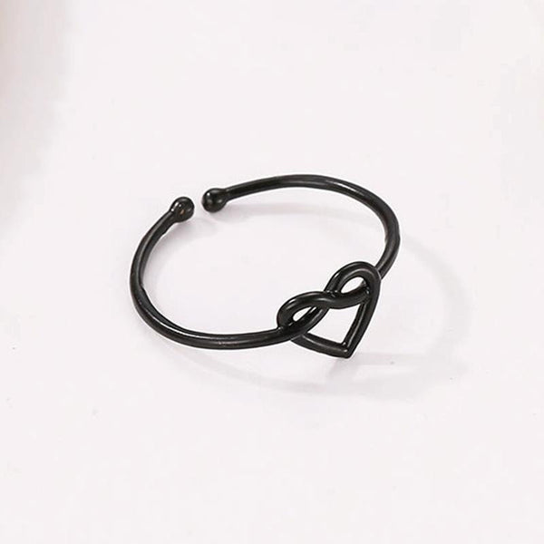Girl Fashion Cute Simple Heart Hollow Open Adjustable Rings(Black)