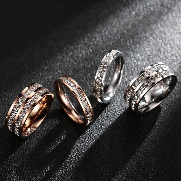 Girls Simple Titanium Steel Diamond Ring, Size: US Size 3(Double Row Silver)