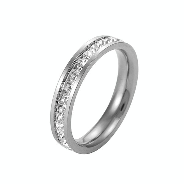 Girls Simple Titanium Steel Diamond Ring, Size: US Size 8(Single Row Silver)