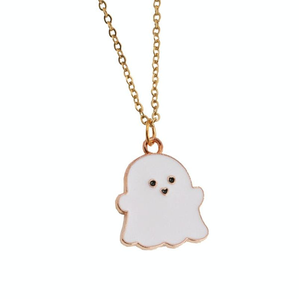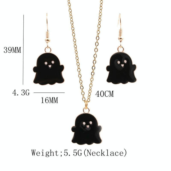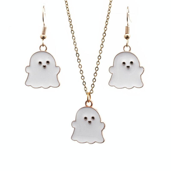 Halloween Jewelry Alloy Ghost Earrings Necklace(White Earrings+Necklace)