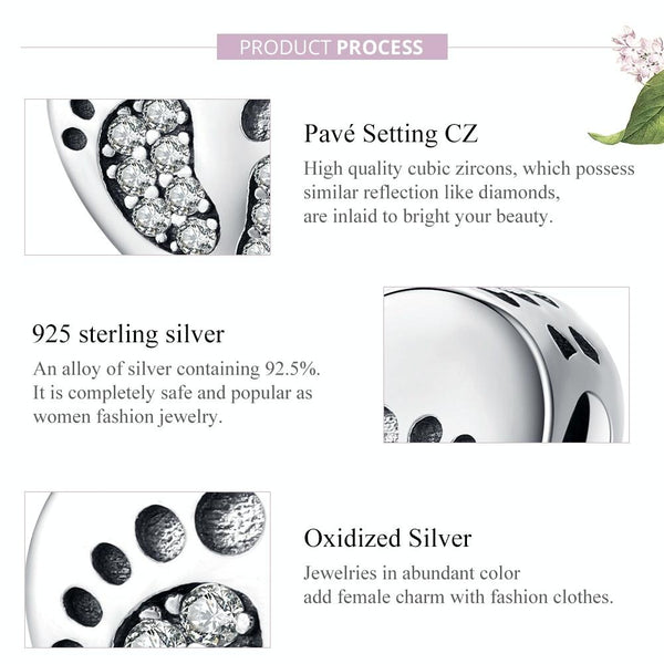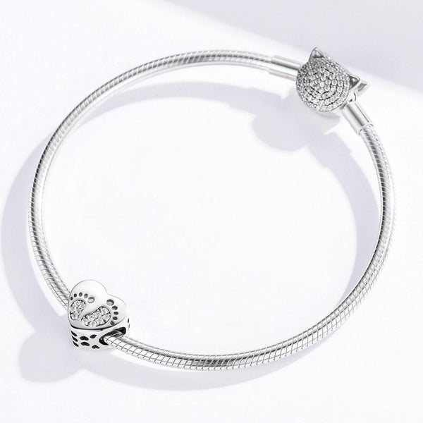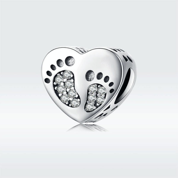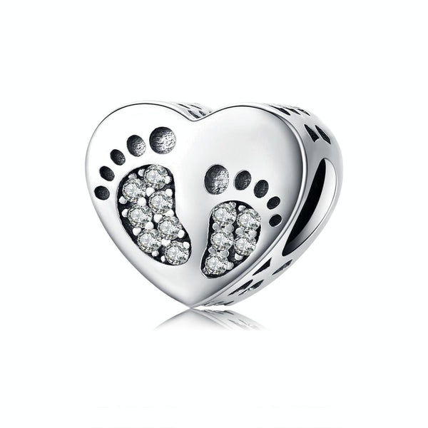 Heart-shaped Footprint Beaded S925 Sterling Silver Loose Beads DIY Bracelet Silver Beads