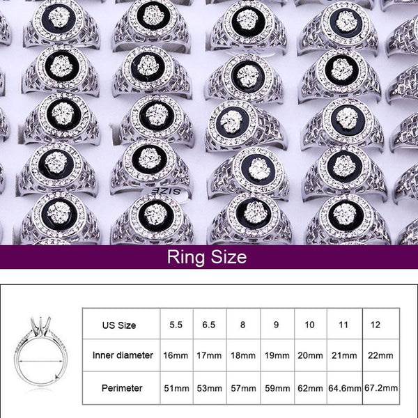 1. Cool fashion rhinestone detailed lion head medallion ring for men.