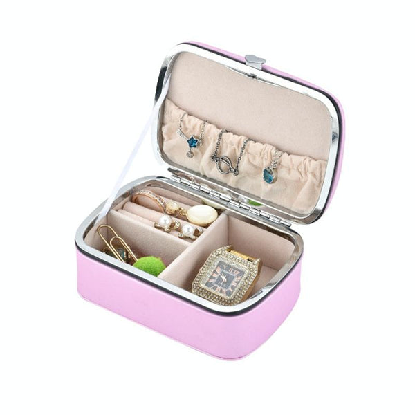 HN-001 PU Portable Ring Earring Necklace Jewelry Storage Box(Pink)