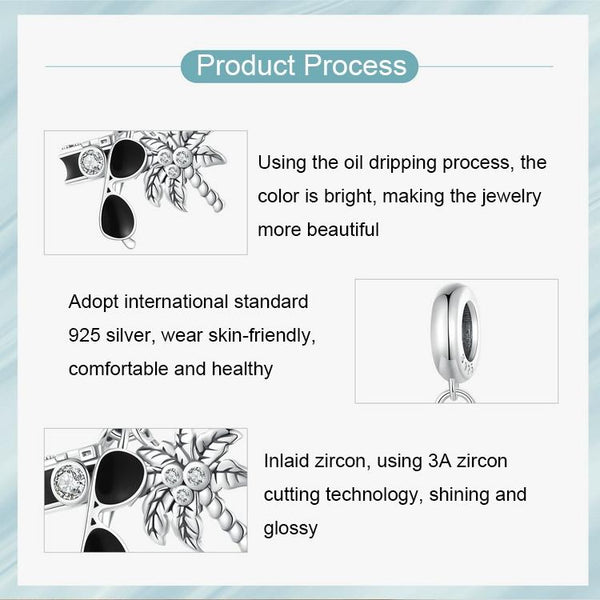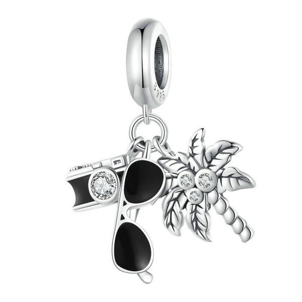 Holiday Style Camera Coconut Tree DIY Pendant S925 Sterling Silver Bracelet Accessories Beads