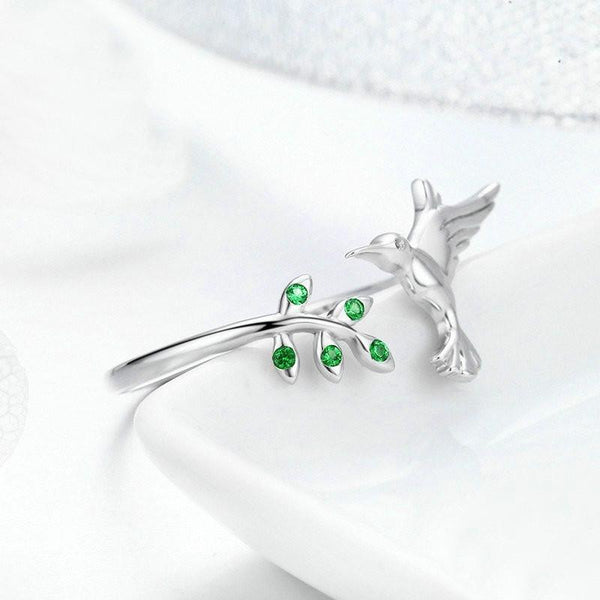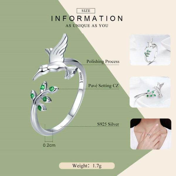 Hummingbird Greeting Opening Female Sterling Silver Ring