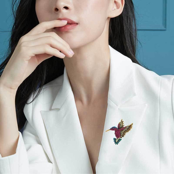 Inlaid Bee Bird Brooch Personality Clothing Pins Scarf Buckle(Blue Diamond)