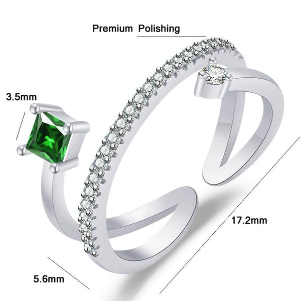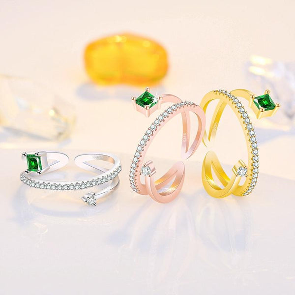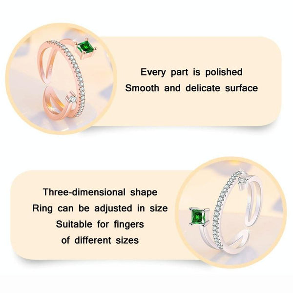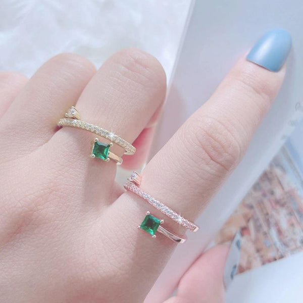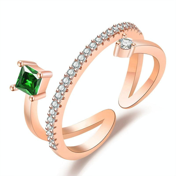 J356 Ladies Emerald Zircon Double Micro Setting Open Ring(Rose Gold)