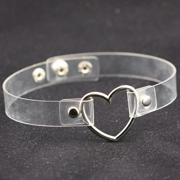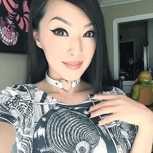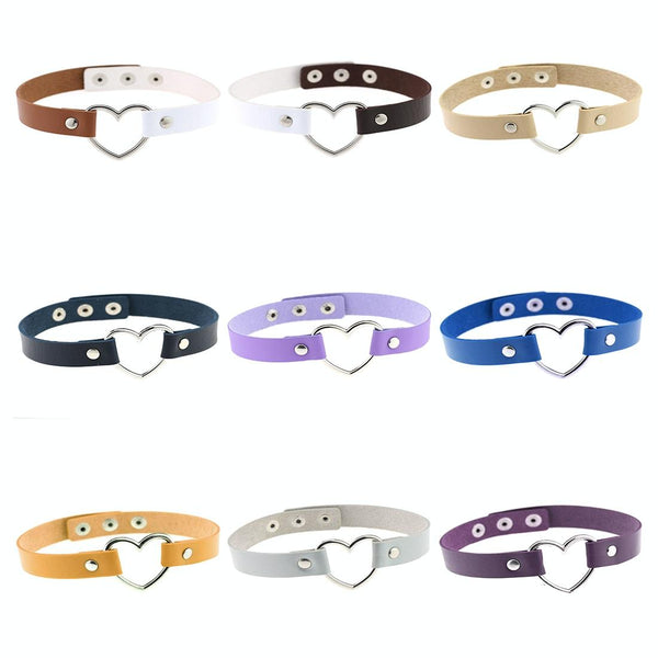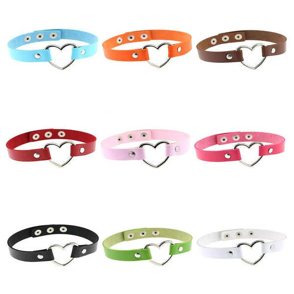 Japanese Harajuku PU Leather Heart Shape Punk Collar Fashion Female Choker Necklace, Random Color Delivery