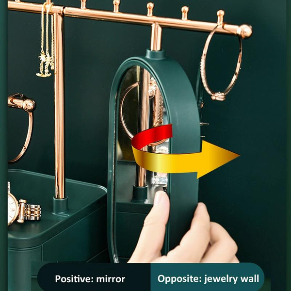 Jewelry and Cosmetics Storage Box Dressing Table with Mirror(Green)