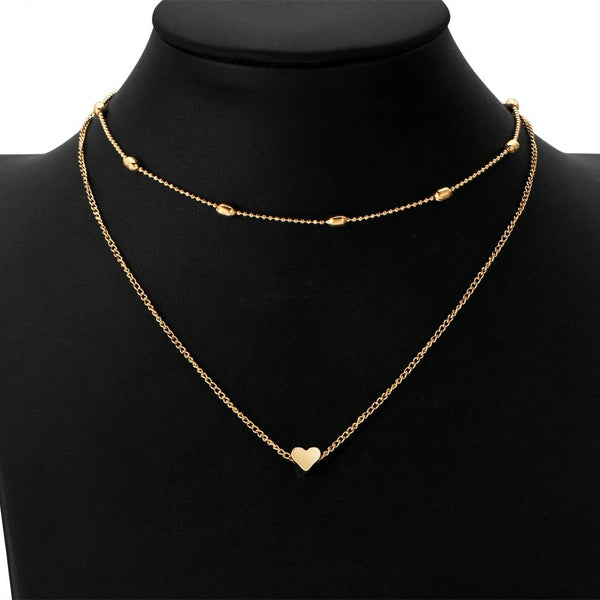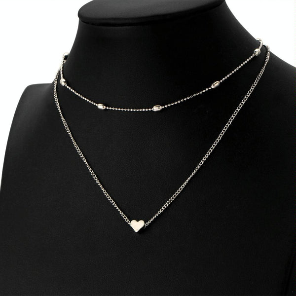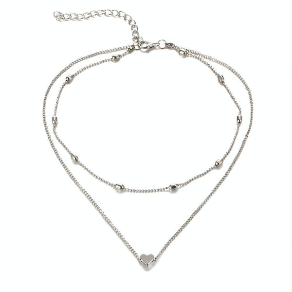 Jewelry Vintage Simple Copper Heart Multi - Layer Clavicle Necklace Wholesale Necklace(Silver)